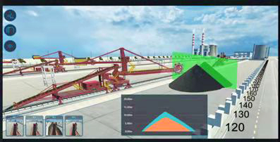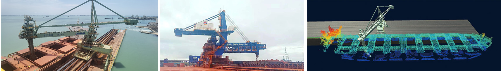 該系統(tǒng)具備船型掃描實時成像、多種船型定位識別、艙內取料智能決策、三維可視化場景還原等功能,相比其他散貨船型識別算法通用性更強,基于設備運動學模型、有限元模型,構建了融合幾十種取料工藝策略的決策分析系統(tǒng),形成多目標優(yōu)化后的取料工藝策略,艙內智能化取料覆蓋率可達80%以上。另外,VR仿真平臺可實現(xiàn)工藝虛擬仿真,大幅減少現(xiàn)場調試時間。