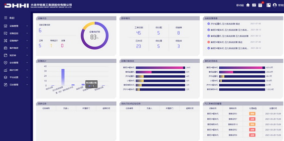 大連重工結合產品性能及工藝特點,在數(shù)據分析的基礎上,開發(fā)了遠程智能運維平臺,整合了單機故障診斷技術、傳感器檢測技術、數(shù)字孿生技術、數(shù)據分析與數(shù)據挖掘算法、云計算等目前主流的先進技術,實現(xiàn)設備故障定位、推送維護計劃和維修建議等功能,目前已在焦爐機械、堆取料機、起重機、連續(xù)卸船機、礦熱爐等設備上成功應用。