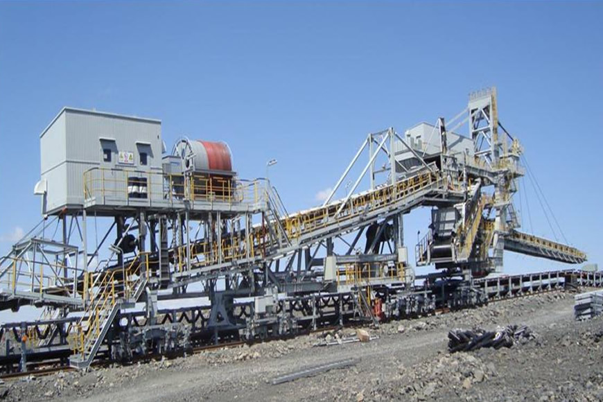 排土機(jī)作為露天礦連續(xù)開(kāi)采或半連續(xù)開(kāi)采工藝中的關(guān)鍵設(shè)備,處于設(shè)備系統(tǒng)的最后一環(huán)。在露天礦開(kāi)采和土石方作業(yè)中,排土機(jī)作為移動(dòng)式連續(xù)作業(yè)的排料設(shè)備,將帶式輸送機(jī)系統(tǒng)運(yùn)送過(guò)來(lái)的表土或剝離物排放于排土場(chǎng)。