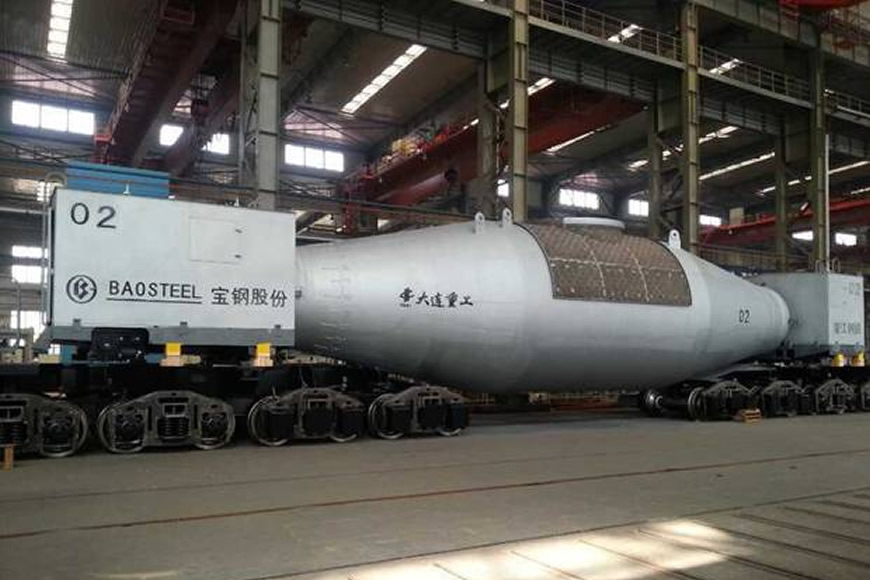 混鐵水車(chē)是供冶金企業(yè)運(yùn)送高爐鐵水至轉(zhuǎn)爐車(chē)間、鑄鐵機(jī)車(chē)間和鑄錠車(chē)間進(jìn)行傾翻鐵水作業(yè)的專(zhuān)用冶金車(chē)輛。大連重工研制的200噸至450噸魚(yú)雷型混鐵車(chē)和筒型混鐵車(chē),產(chǎn)品市場(chǎng)占有率95%,并出口日本、美國(guó)、印度、土耳其、巴西、越南和阿爾及利亞等國(guó)家和地區(qū)。
