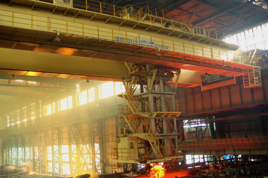 鑄造起重機(jī)是煉鋼連鑄工藝中的主要設(shè)備之一,主要用于轉(zhuǎn)爐加料跨向轉(zhuǎn)爐兌鐵水,在精煉跨將鋼水吊運(yùn)至精練爐或在鋼水接受跨將鋼水吊運(yùn)到連鑄回轉(zhuǎn)大包臺上。大連重工設(shè)計制造的75-480噸鑄造起重機(jī)服務(wù)于國內(nèi)各大鋼廠,并出口至印度、巴西、墨西哥、泰國、馬來西亞等國家。